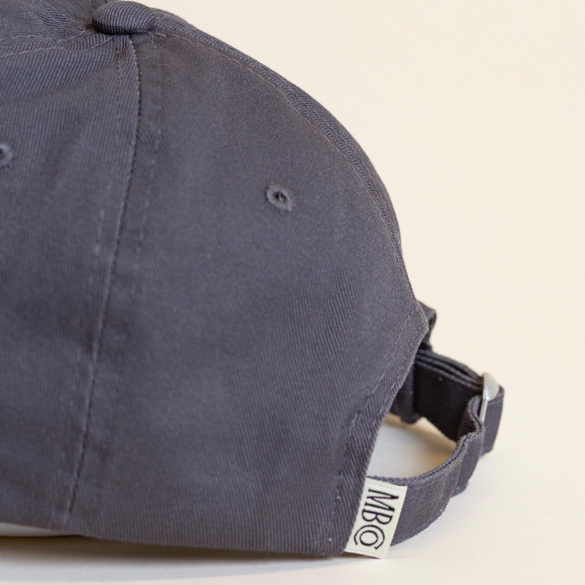 Charcoal Dad Hat for the win! This classic, custom hat has a worn in, charcoal color, ready for any outing. Our MBCo logo on the front embroidered in white, custom interior taping, and our branded clamp tag on the back. Adjustable sizing allows for a comfortable fit.
